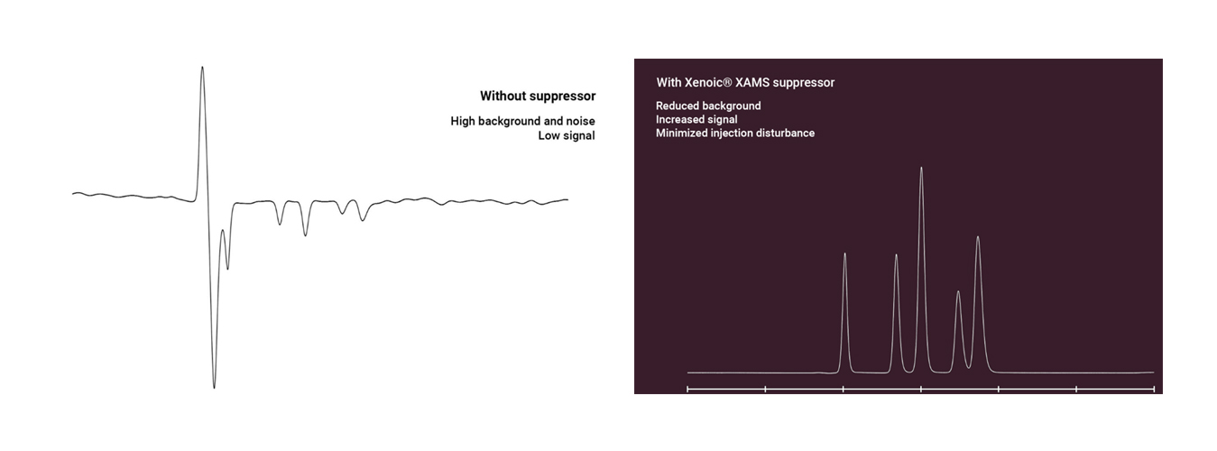 The Xenoic® XAMS membrane suppressor and the Xenoic® ASUREX automatic regenerator are designed to maximize sensitivity in anion chromatography by minimizing the eluent background conductivity and noise. The robust and flexible design of ASUREX and XAMS ensures stable routine operation together with many different brands of ion chromatography systems and conductivity detectors.