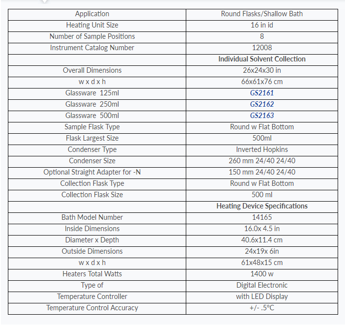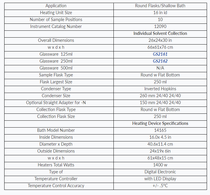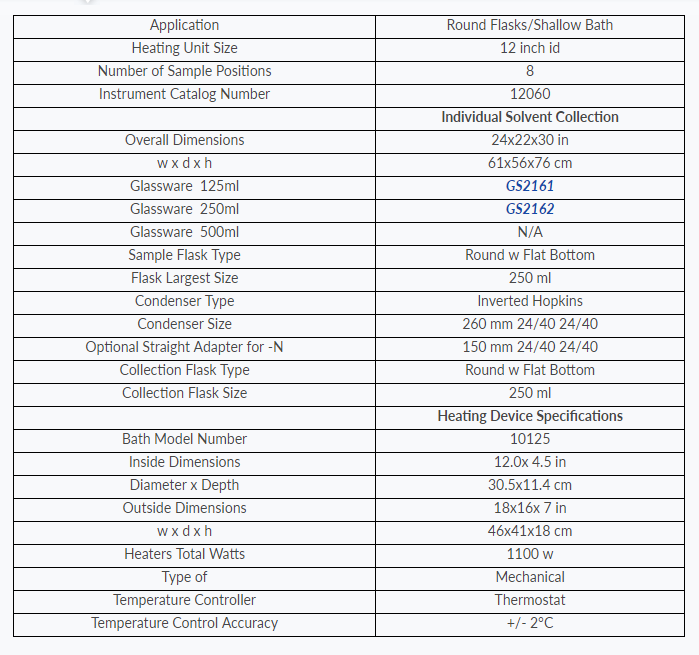 - Solvent recovery: recover up to 97% of starting solvent volume with individual collection glassware
